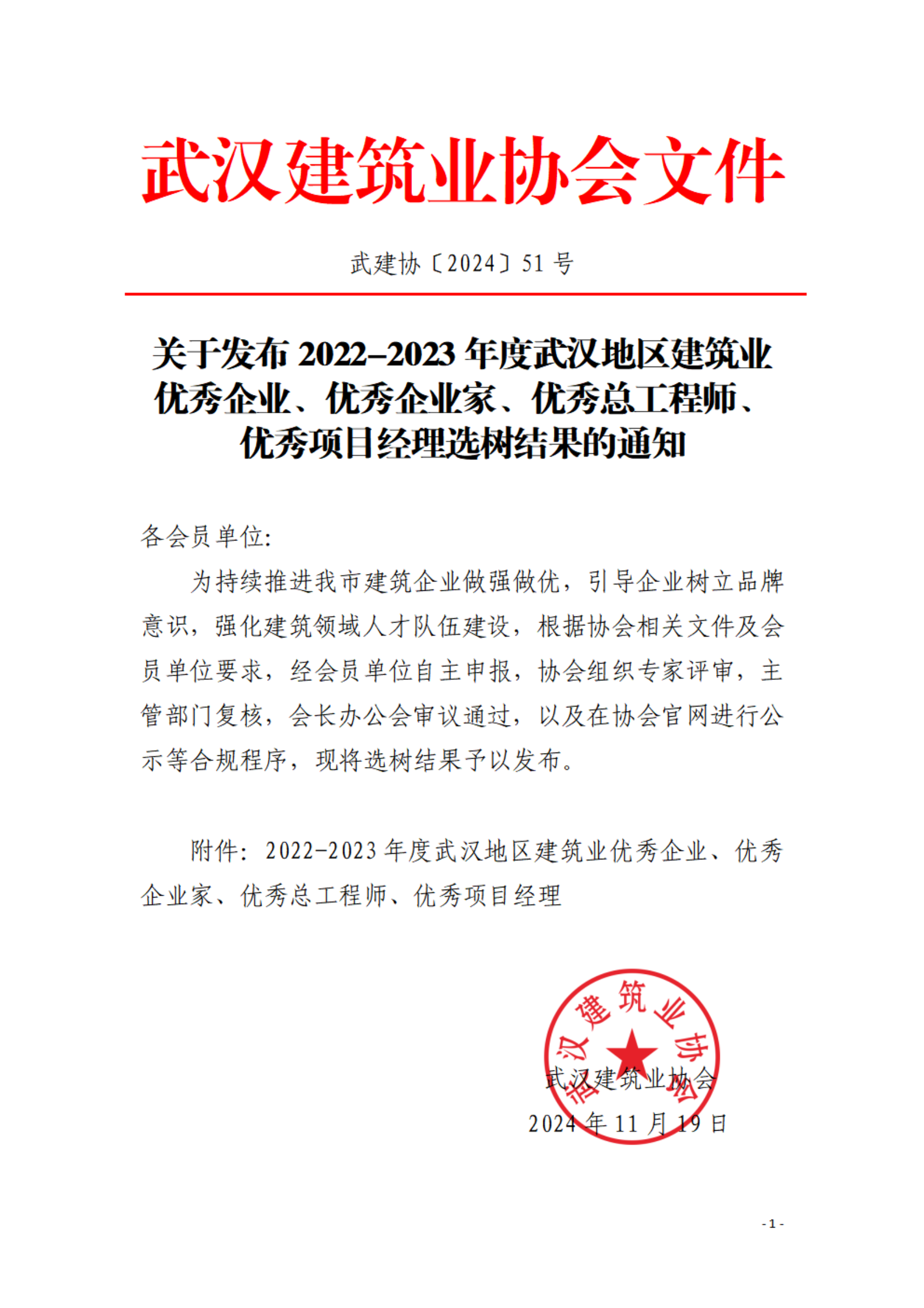 • 2024-11-22湖北省建工第五建設有限公司榮獲2022-2023年度武漢地區建筑業“四優”...[]